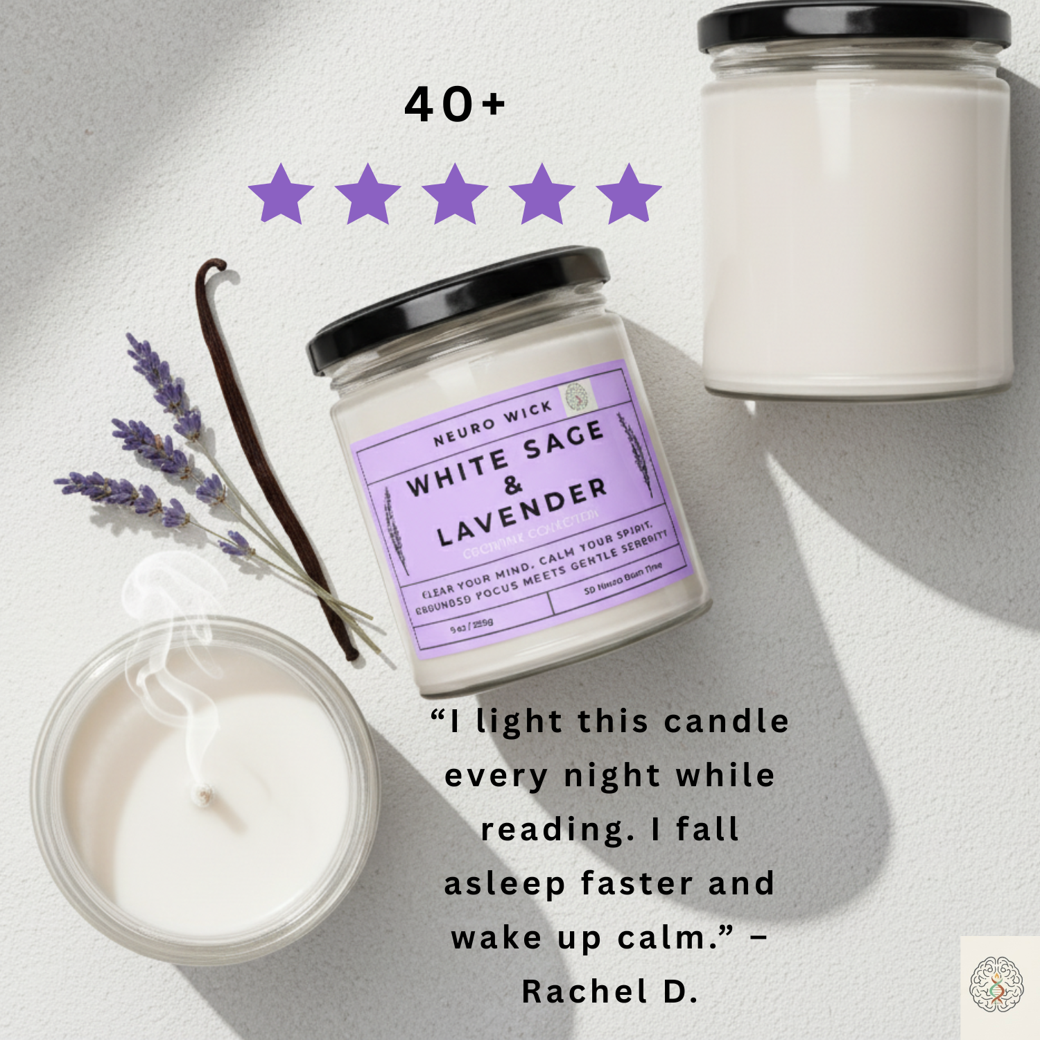Susan-"TheWhite Sage & Lavenderis the best sleep ritual I’ve found. Not that overpowering 'soap' lavender—it's soft, herbal, and sophisticated. My new evening essential."⭐️⭐️⭐️⭐️⭐️